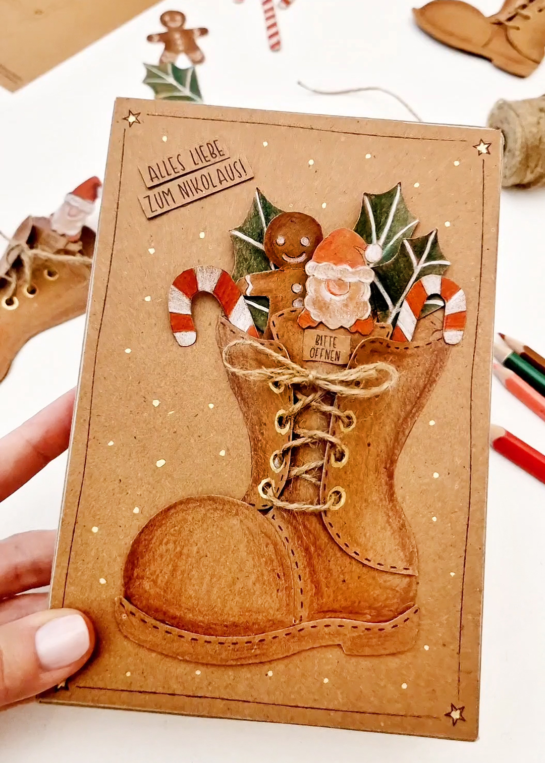 Süße 3D Karte mit Nikolausstiefel zum Öffnen