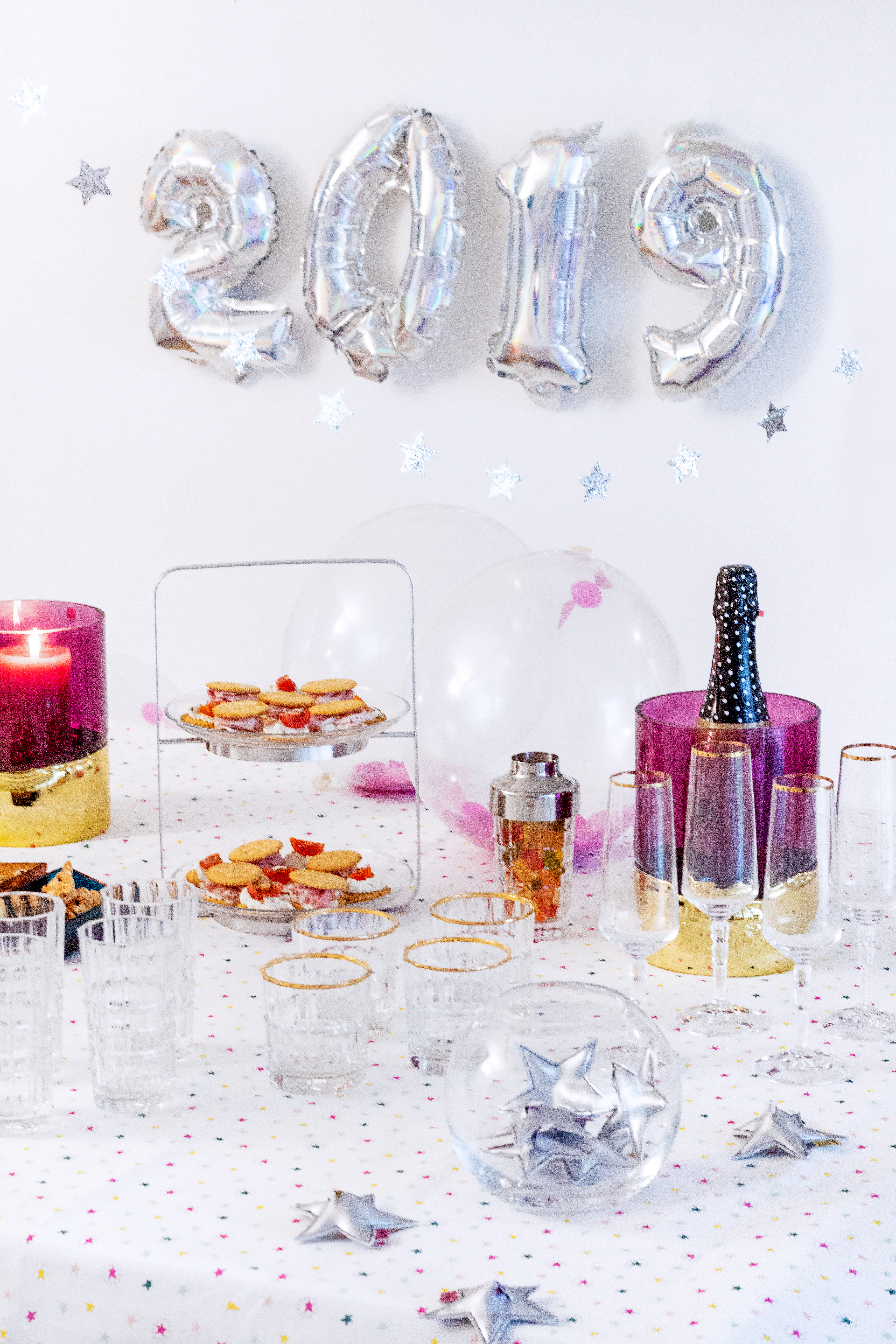 Im Anschluss gibt es wie immer eine passende DIY-Idee. Diesmal habe ich mir sternförmige Glücksbringer für eure Gäste mit versteckten Motto-Sprüchen fürs neue Jahr 2019 ausgedacht: