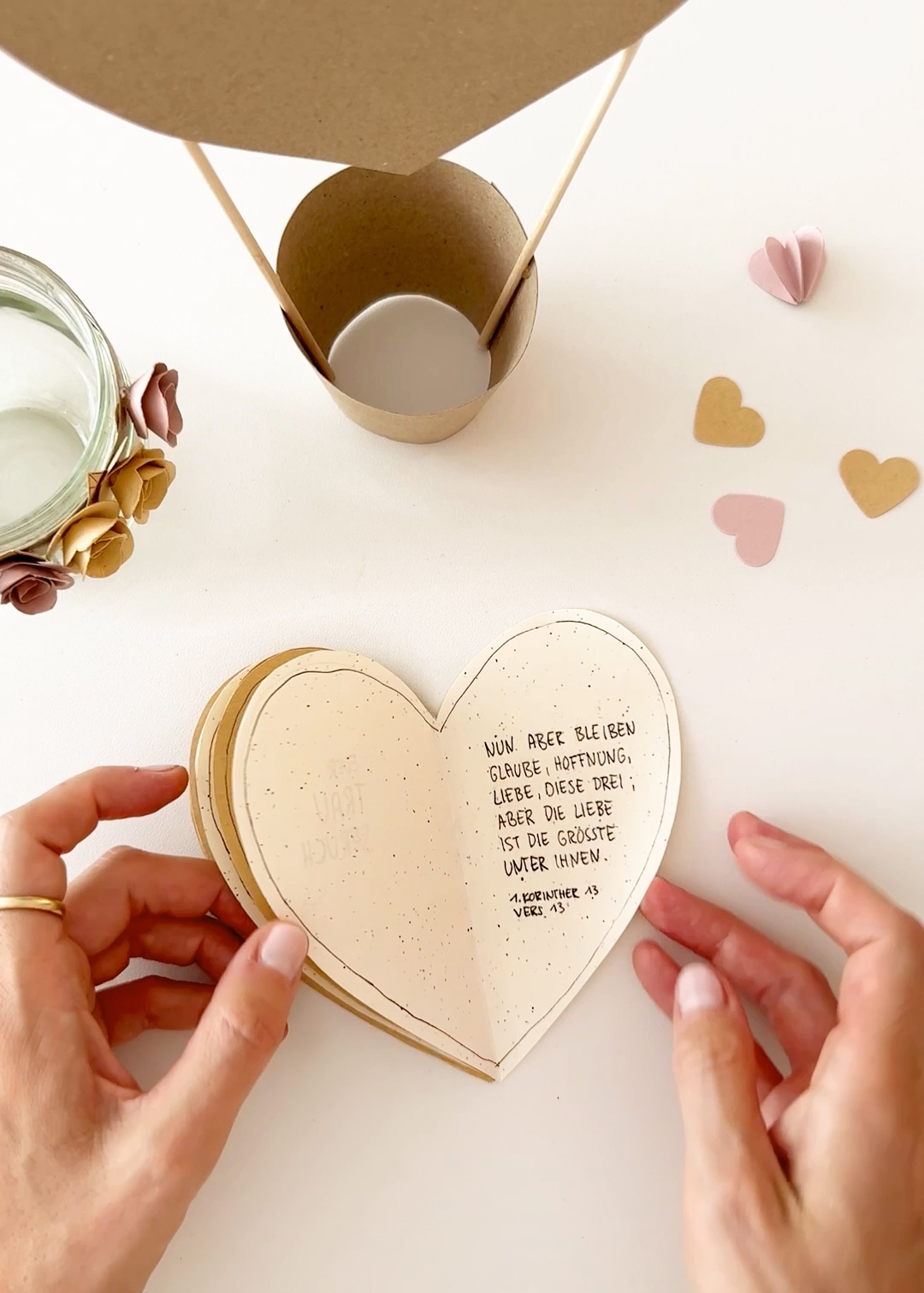 Heute zeige ich euch zusammen mit GLÜCK meine ganz neue Idee: ein Herzballon als Geldgeschenk zur Hochzeit – Der Ballon besteht aus vielen Schichten Papier, so dass man in ihm wie in einer Mini-Hochzeitszeitung blättern kann. Darin könnt ihr dann persönliche Wünsche ans Brautpaar, schöne Sprüche, Fotos, Infos zur Hochzeit, den Trauspruch, gemeinsame Erinnerungen und vieles mehr eintragen :) Auch ein kleines verschlossenes Geldfach versteckt sich im Ballon. Sowohl die Herzkonstruktion als auch die beschriftbaren Herz-Blätter und die Blumenvorlagen findet ihr in meiner Vorlage in der Materiallist. So könnt ihr den Herzballon ganz persönlich beschriften und nach euren Wünschen gestaltet und dem Brautpaar eine schöne Erinnerung schaffen!