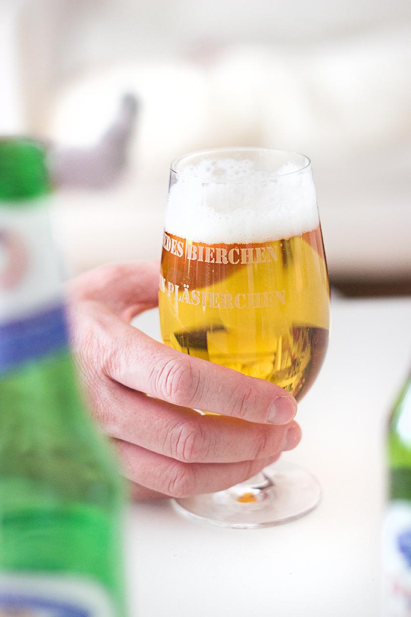 So, neue Idee, neues Geschenk – diesmal für meinen Freund und Fast-Ehemann Johannes. Der ackert wie blöd, ist trotzdem dauernd für uns da, ist der beste und witzigste Papa und hat sich nach der Arbeit mindestens ein Feierabendbierchen verdient! Wenn das dann noch in diesem Bierglas (KLICK) mit Gravur serviert wird, dann ist garantiert „Jedes Bierchen ein Pläsierchen“ ;)