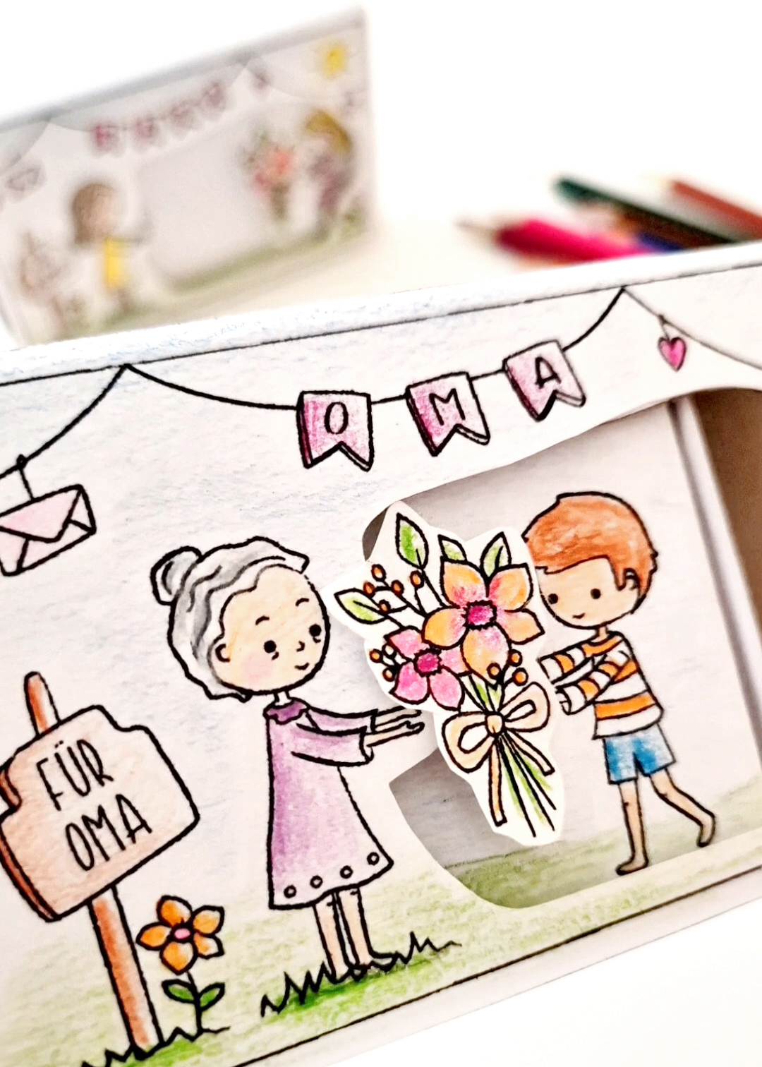 Auch als kleines Geschenk für Oma zum Geburtstag oder einfach nur so ist die Streichholzschachtel super geeignet ;)