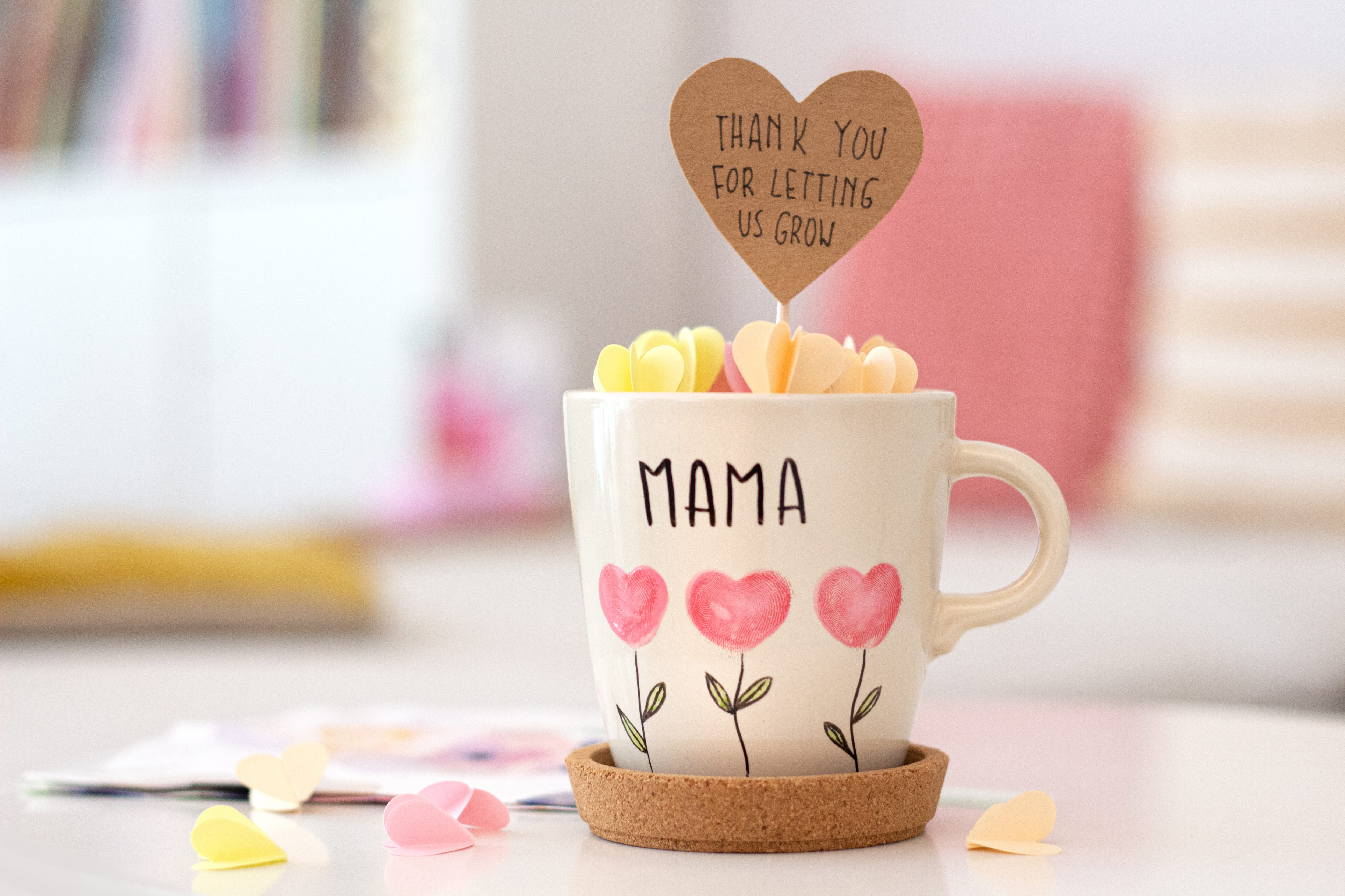 Mit dieser schönen DIY Tasse zum Muttertag könnt ihr eurer Mama alleine oder gemeinsam mit euren Geschwistern ganz anschaulich dafür danken, dass sie euch liebevoll großgezogen hat.