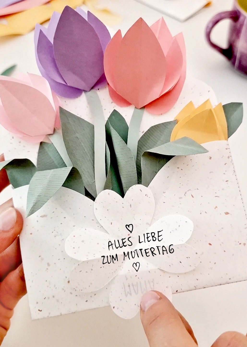 Fertig sind die süßen Tulpen im Briefumschlag zum Muttertag! Schickt mir gerne Fotos von euren Ergebnissen, ich teile diese immer gerne in meiner Instagram Story.