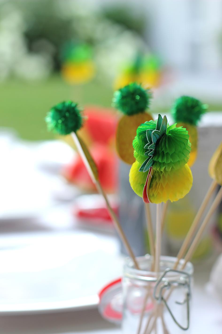 … und diese süßen Ananas-Spieße und die gemusterten Papierteller sind aus der digitalen Gartenparty-Abteilung von Design3000: KLICK